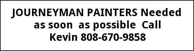 JOURNEYMAN PAINTERS Needed as soon as possible Call Kevin 808-670-9858